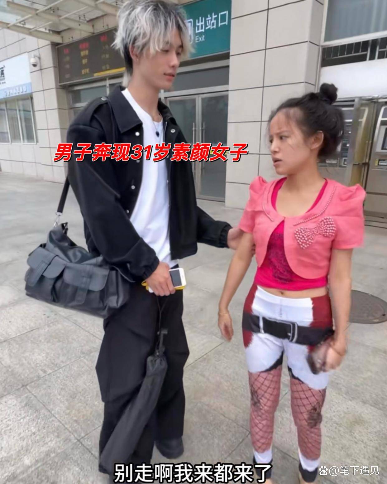 视频记录下了这场特殊的见面。车站出口,李女士身高1米52,穿着朴素的花裤子,扎着有些凌乱的丸子头,完全素颜的脸上带着农村女性特有的淳朴气息。她没有刻意打扮,甚至显得有些“土气”。