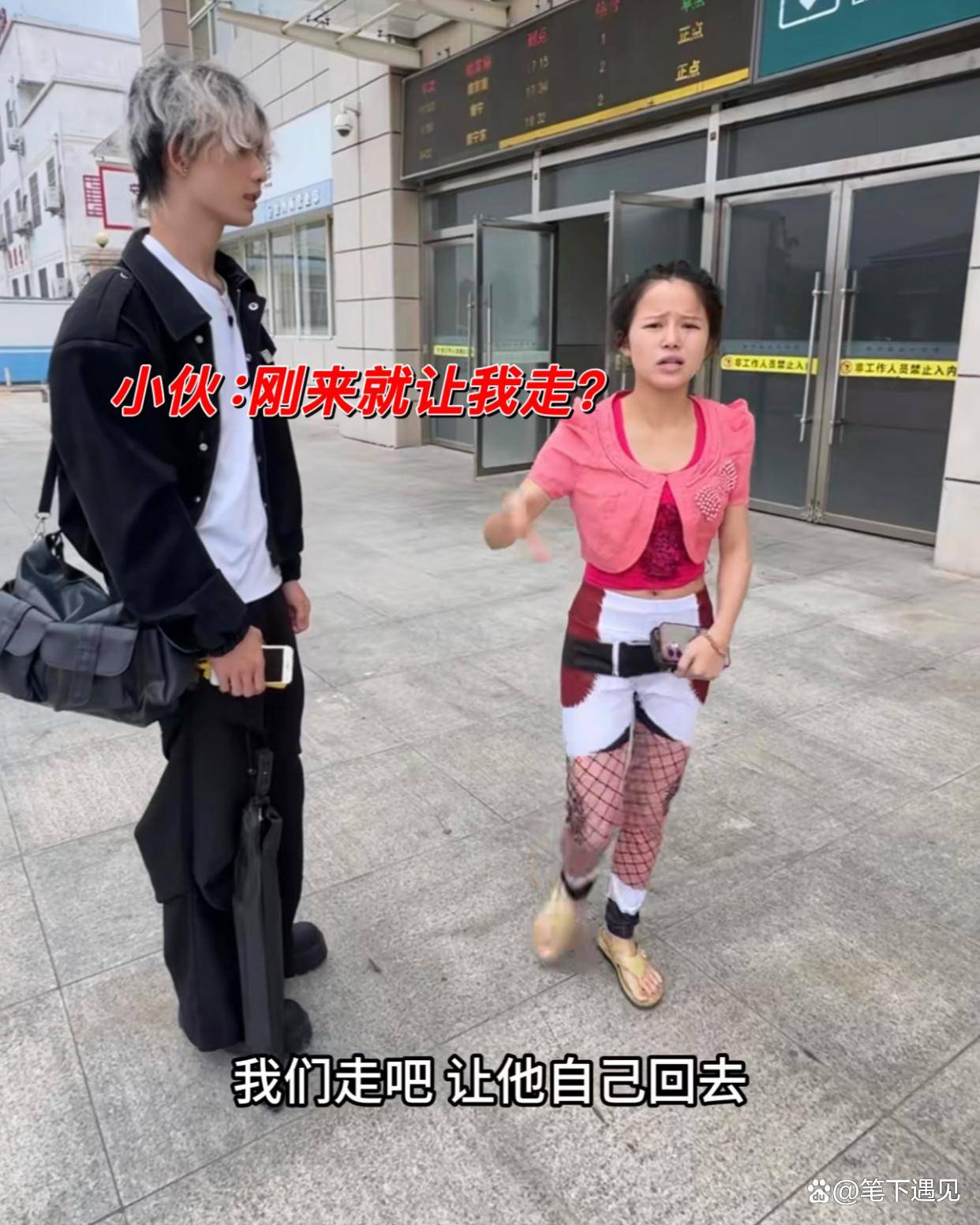 “不是,姐姐,来都来了,咱俩还没聊天吃饭呢!”小伙急忙追上,自然地搭上她的肩膀,语气中带着委屈。
