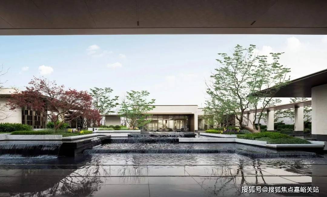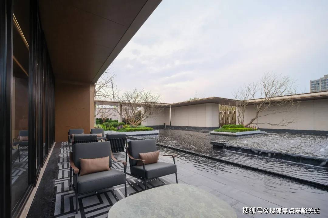 项目售楼处实景图(仅为展示效果,以实际交付为准)· 四重隐境水院:风雅会客厅出来经过风雨连廊区连接的就是项目售楼处,经过风雨连廊区的时候会看到项目打造的